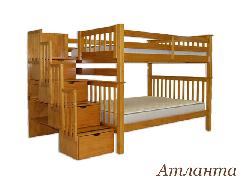 Двухъярусная кровать с лестницей и ящиками “Лига” изготавливается из массива сосны, ящики из высокопрочной березовой фанеры. Кровать расчитана на нагрузку нижнего яруса до 250кг, верхнего яруса до 150кг, таким образом, модель кровати подойдет для людей различного возраста и комплектации.